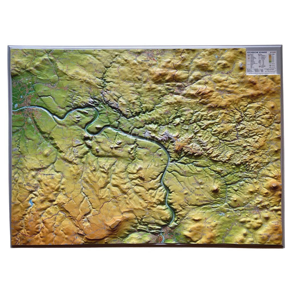 Českosaské Švýcarsko - nástěnná plastická mapa 80 x 60 cm
