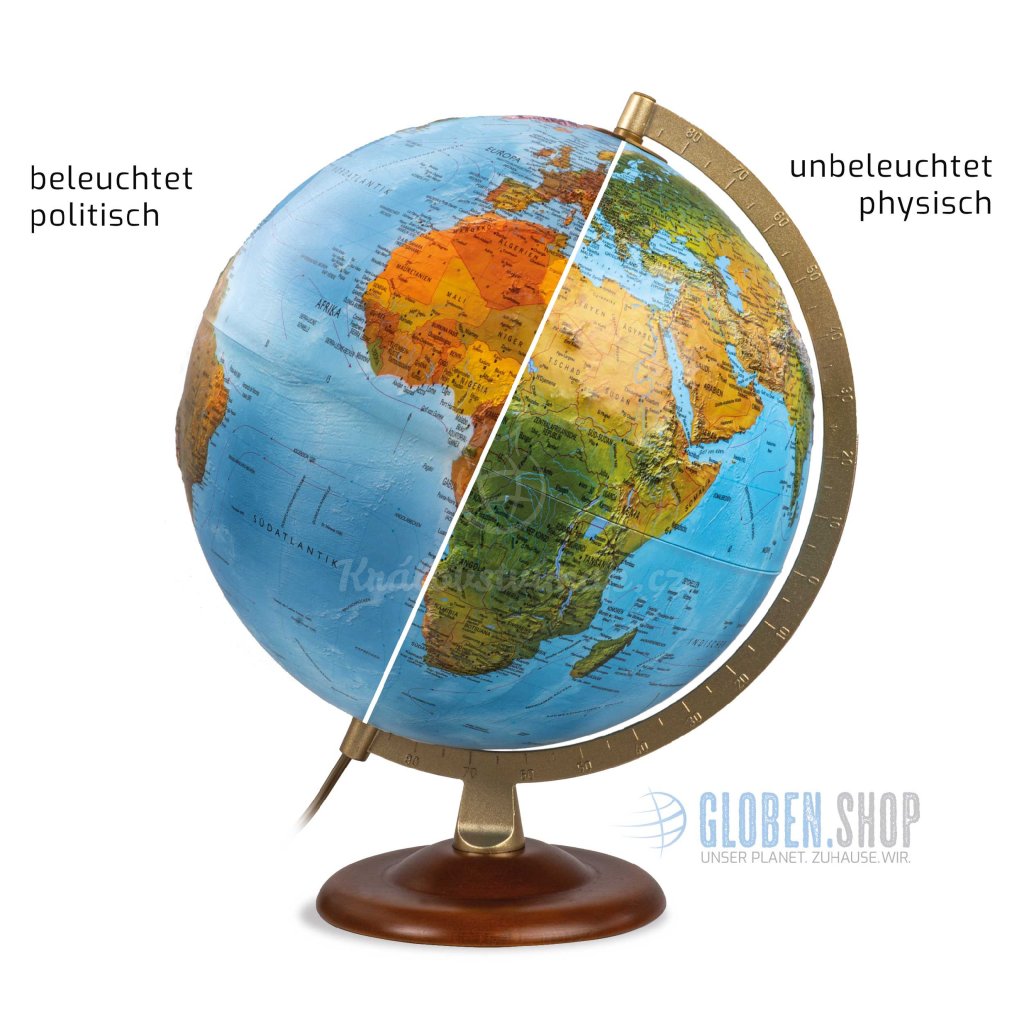 Reliéfní svítící globus Classic je nejen krásným doplňkem do každého interiéru, ale i praktická školní pomůcka při výuce zeměpisu. Plastické zobrazení zemského povrchu nabízí lepší přehled o rozložení a velikosti pohoří na naší planetě.